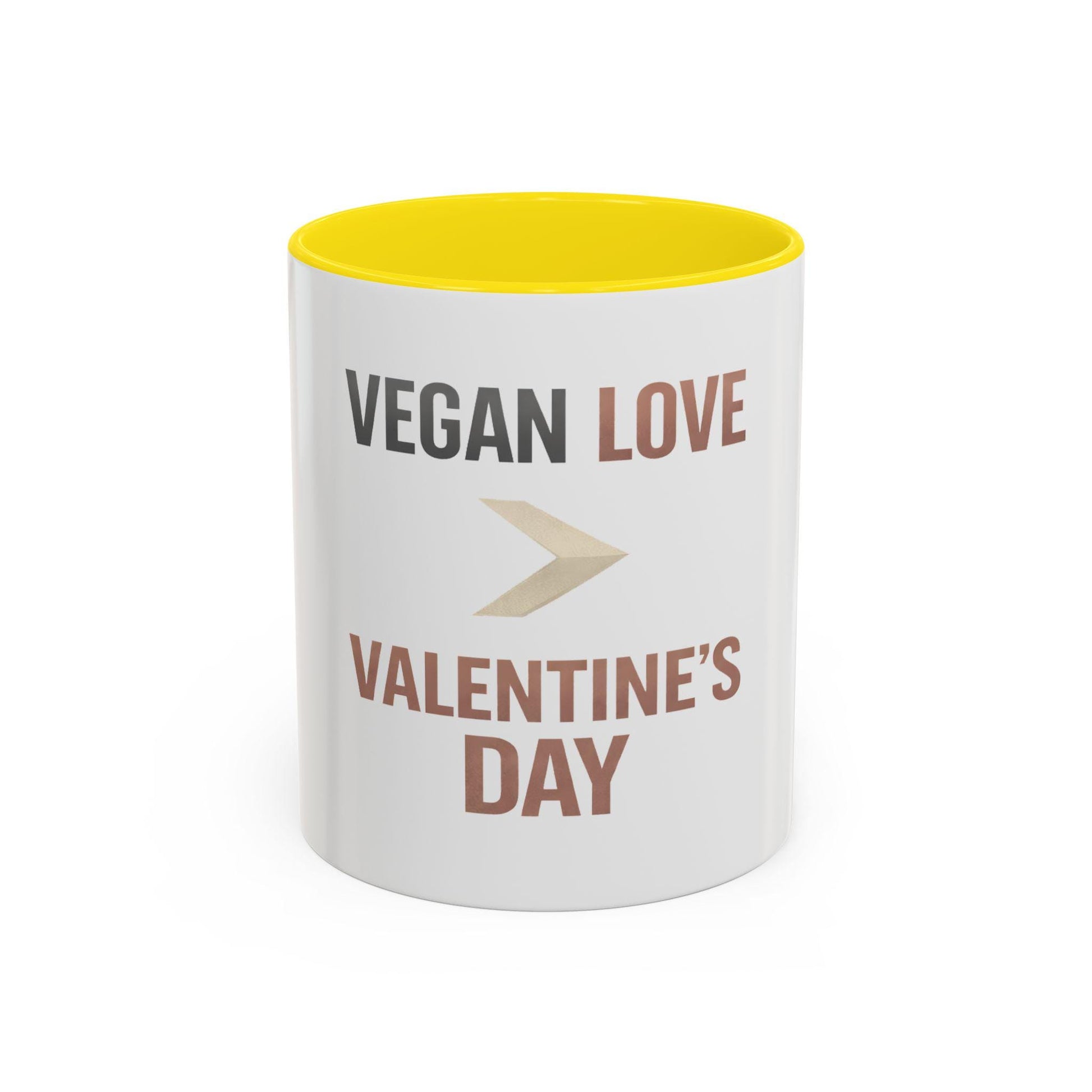 Warm, slightly cheeky, and made for plant-based mornings. This ceramic accent mug features a crisp white exterior paired with a pop of color on the inside and handle — framing the message “Vegan Love > Valentine’s Day” with playful confidence.